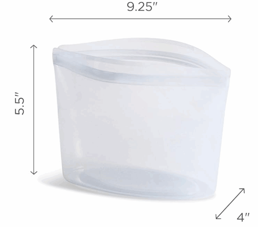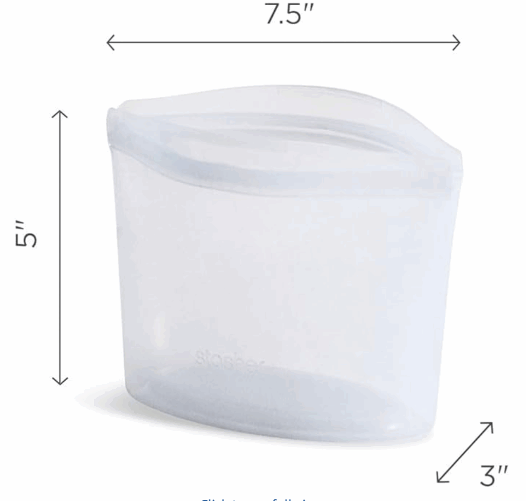 • Cups – There are also now Stasher bags that come in different cup sizes. These, I believe, have been a real game changer! These are advertised as being able to heat in the microwave and oven as well. The different cup sizes are 1 cup, 2 cup, 4 cup, 6 cup, and 8 cup.
